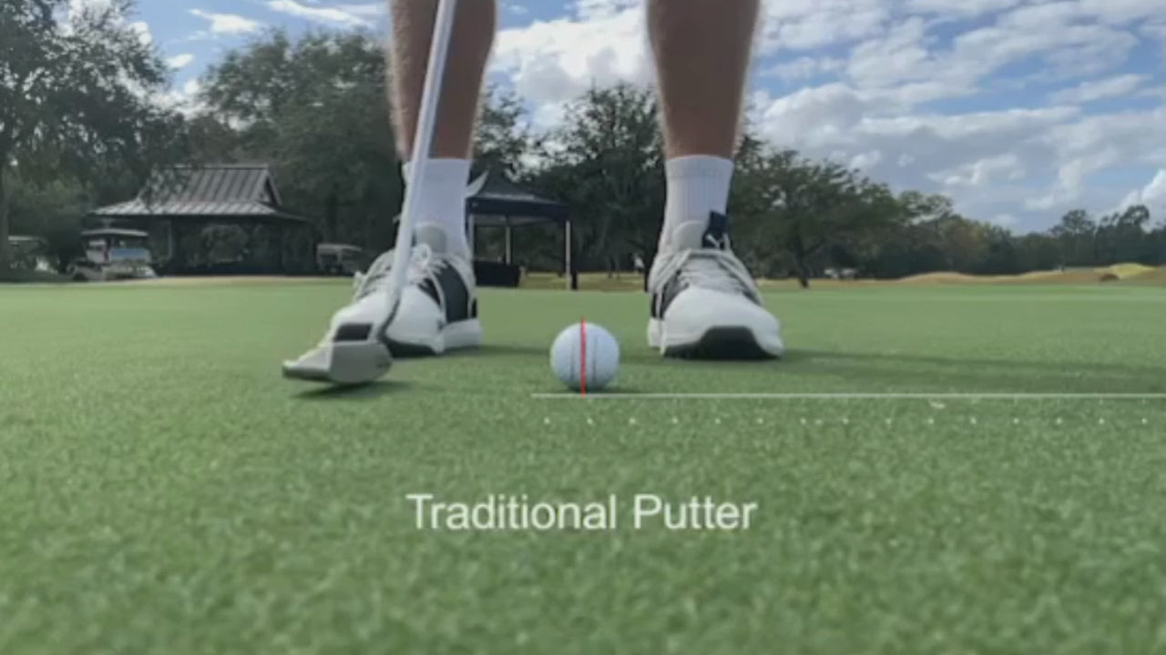 Spoiler imparts a purer, forward roll on the golf ball. Most traditional putters launch the ball (even if slightly) in the air, creating hopping and skipping to start the putt. However, Spoiler's design with Lead Edge Roll face technology and 0° of loft, gets the ball rolling sooner. You can actually feel, see, and hear the difference when you putt with The Spoiler. Additionally, Spoiler can help you identify issues in your putting stroke and give you immediate, visual feedback.